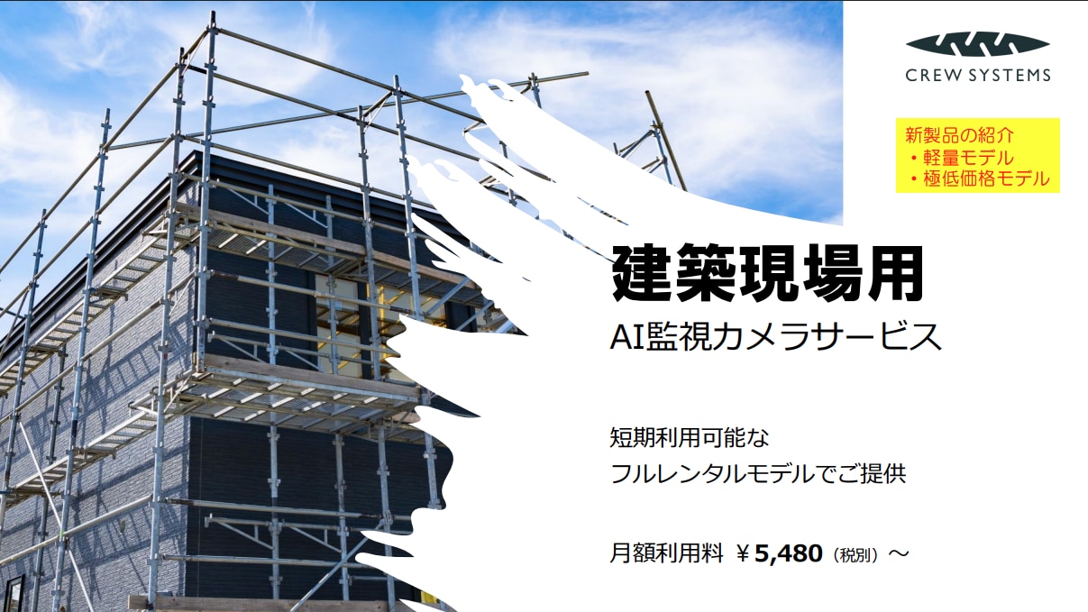 ①電源をつなぐだけで、すぐに使える! ② AIがエリア侵入を自動検知! ③ プライバシーマスキング機能搭載 ④ 夜間でも鮮明な映像を確保! ⑤ 月額5,480円〜利用可能!